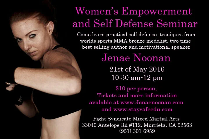 Come join me every Monday night at Team 3 Checkmat in Montclair Ca. at 7 pm for women's self defense.